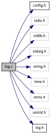 #include <config.h>#include <stdio.h>#include <stdlib.h>#include <stdarg.h>#include <string.h>#include <time.h>#include <errno.h>#include <unistd.h>#include "log.h"Include dependency graph for log.c: